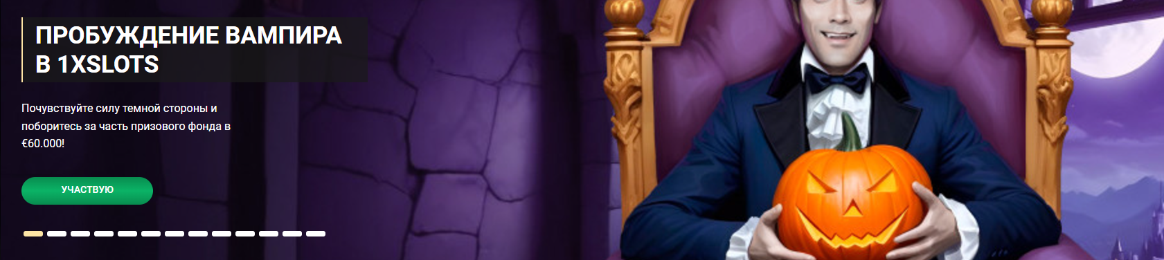 Главная страница 1xSlots сделана по принципу “всё под рукой”: верхнее меню — разделы игр, акции, турнирная сетка, лотереи и бонусы; в правом верхнем углу — кнопки входа и регистрации, переключение языка и валюты. В центральной части — карусель промо, ниже — блоки с подборками слотов, провайдеров, новинками и хедерами “топ игр”.